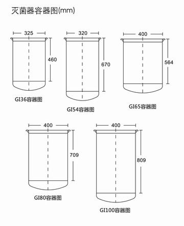 | 滅菌腔尺寸(直徑*高)(mm) | Ф325×460 | Ф325×670 | Ф400×564 | Ф400×709 | Ф400×809 |